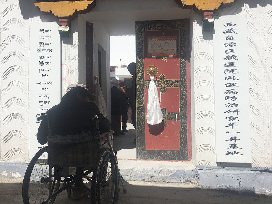等待接受藏醫(yī)藥扶貧治療的西藏自治區(qū)藏醫(yī)院風(fēng)濕病防治研究所羊八井基地門前的病患。 中國中醫(yī)藥報徐婧供圖
