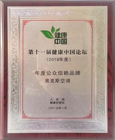 奧克斯空調(diào)獲“第十一屆健康中國(guó)論壇·年度公眾信賴品牌”獎(jiǎng)