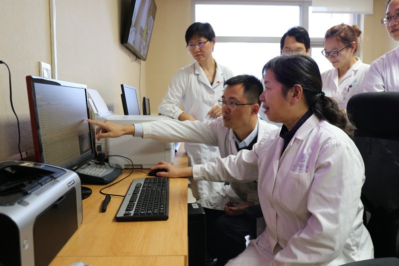 葉京英(右一)帶領團隊研究睡眠監測數據/清華長庚醫院供圖