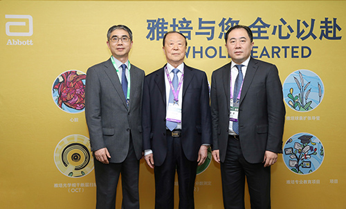 國家心血管病中心中國醫學科學院阜外醫院高潤霖院士(中)、國家心血管病中心中國醫學科學院阜外醫院徐波教授(右)、雅培心血管業務部門副總裁、大中華區總經理總經理譚敏杰先生(左)合影
