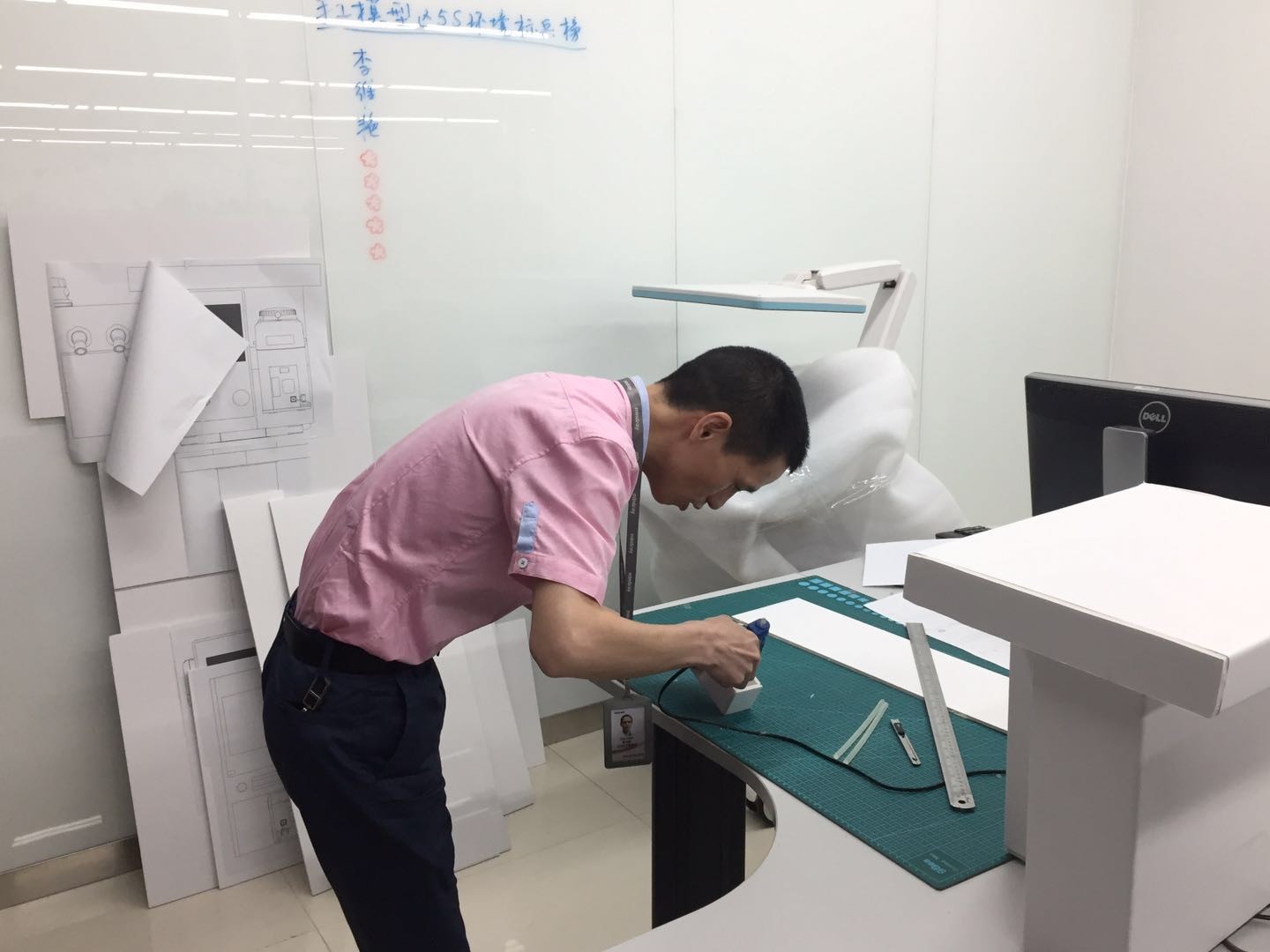 在邁瑞總部大廈2層設計中心的辦公區內,設計師柴海波正在仔細地打磨一款產品的草模,這是醫療產品工業設計中驗證設計概念的重要環節。由工業設計師們設計完成的概念原型,集成了戰略、市場、臨床及研發等多方智慧,最終將成為一臺臺醫療器械設備,走進世界各地的各類醫療機構,去完成它們的使命。