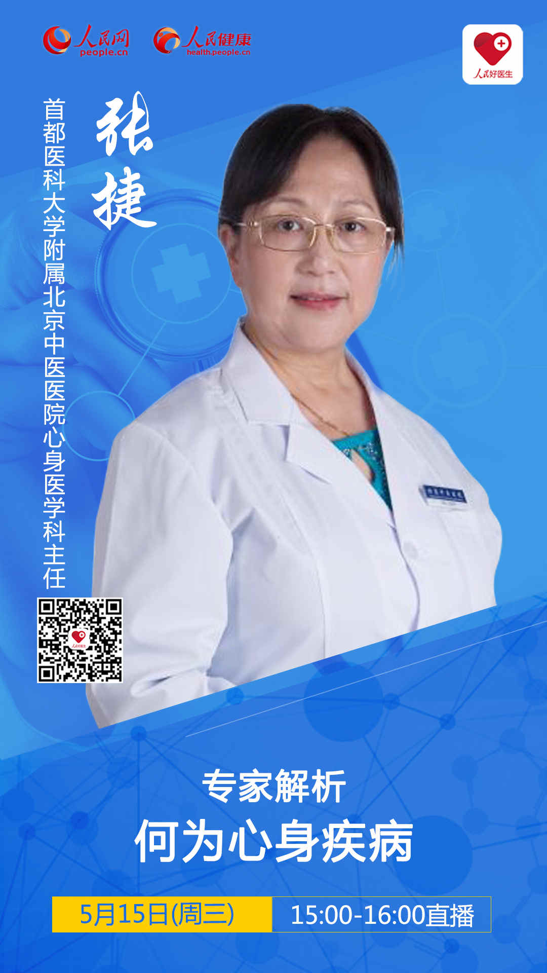 常見的心身疾病有哪些?它是如何發生發展的,又該如何治療?2019年5月15日(周三)15:00-16:00,首都醫科大學附屬北京中醫醫院心身醫學科主任張捷將在“人民好醫生”App進行科普直播,并在線解答大家關于心身疾病的各種困惑,別錯過哦!