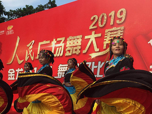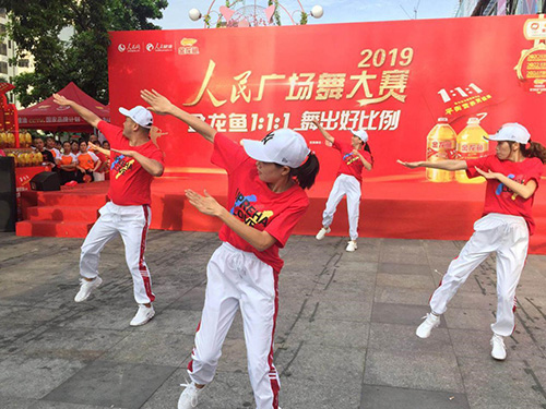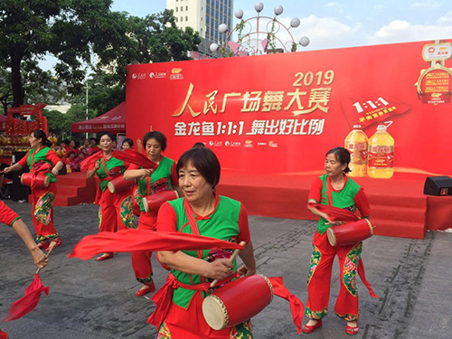 6月15日,由人民網人民健康、金龍魚黃金比例調和油聯合主辦的“金龍魚1:1:1舞出好比例”2019人民廣場舞大賽東莞站正式開賽,吸引了當地近百支廣場舞隊參加比賽。