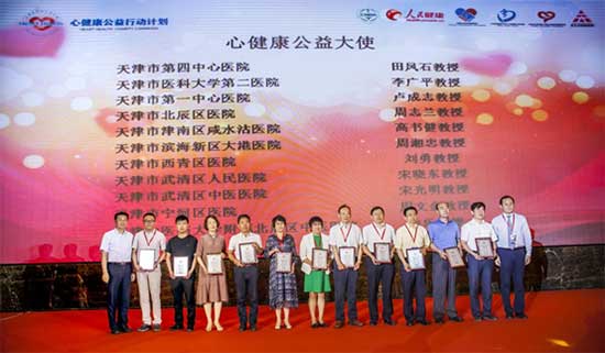 霍勇教授為天津市胸科醫院院長、天津市心血管病防治辦公室主任、天津市胸痛聯盟主席郭志剛教授頒發了“心健康公益大使”證書。隨后,郭志剛教授和天津市衛生和健康委員會醫政處處長劉先奪為24位來自天津市各地區醫院的心血管醫生授予了“心健康公益大使”證書。