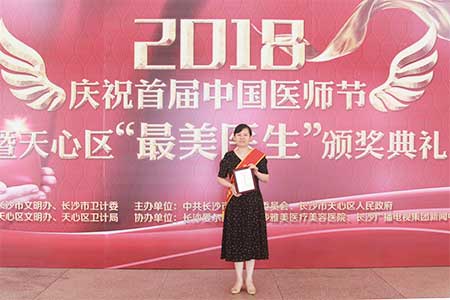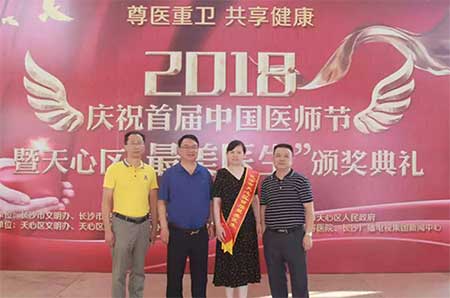 首屆中國醫師節暨天心區“最美醫生”頒獎典禮上,長沙陽光醫院不孕科主任肖彬榮獲天心區首屆“最美醫生”提名獎。