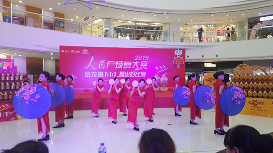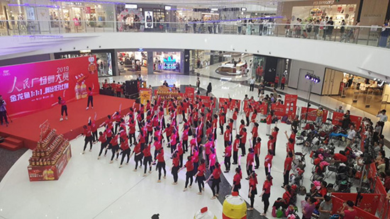 萬達廣場中央,百人共舞動金龍魚主題舞曲《1:1:1舞出好比例》