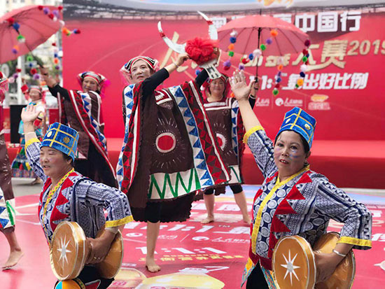 參賽選手身著民族服飾載歌載舞慶祝豐收