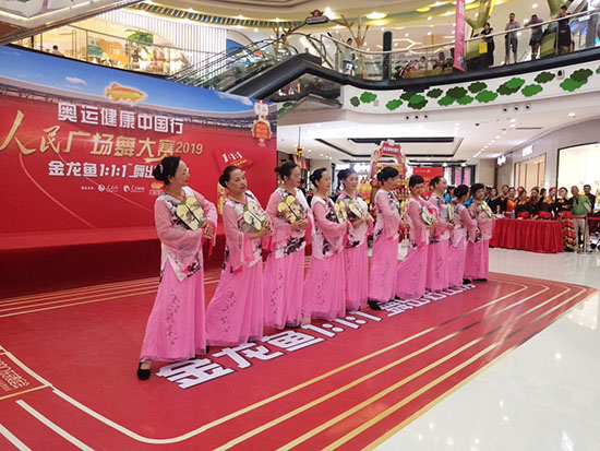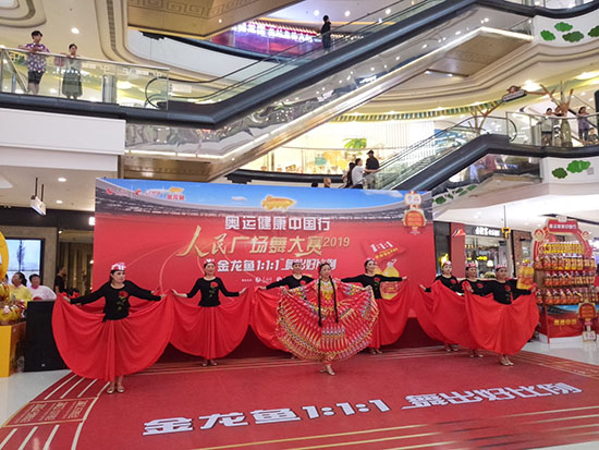 8月8日,由人民網人民健康、金龍魚黃金比例調和油聯合主辦的“金龍魚1:1:1舞出好比例”2019人民廣場舞大賽蘇州站在吳中萬達廣場火熱開賽。