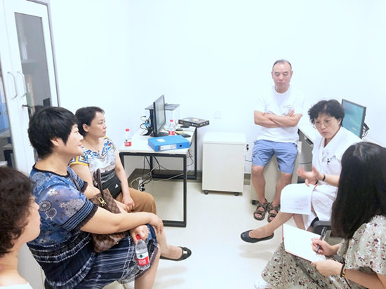 王宜(右二)在與患者“話療”。