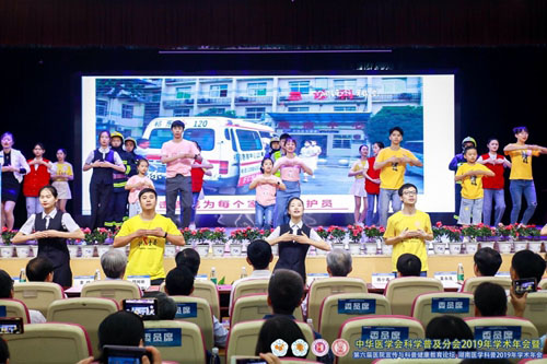 在8月30日下午舉行的醫學科普創新案例展示大賽上,共有來自國內17家醫院的19個案例參賽,經過選手精彩展現和評委綜合評分,最后評選出十佳案例、優秀案例及最佳網絡人氣案例獎。這些案例有的介紹急救操如何與廣場舞結合,將急救知識融入當地群眾業余生活;有的闡釋健康科普傳播組織架構和立體化傳播途徑,多維度展現科普植根本土、拓展至各地的先進經驗……其中,湖南省人民醫院改編熱門電影臺詞,醫護人員變身消防員、銀行職員等不同職業身份,將節奏鮮明動感、歌詞朗朗上口的急救歌廣場舞跳得熱力十足,引發全場熱烈掌聲。