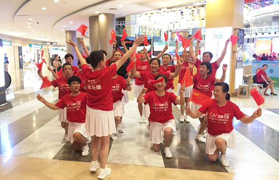 兩江交匯、三鎮鼎立、濱江濱湖,山靈水秀,作為國家歷史文化名城的武漢,晴川臺臨江而立,與黃鶴樓隔江相望;武漢三鎮隔江鼎立,奔流不息的長江哺育出熱烈活潑的人民性格。在比賽現場,不僅參賽的阿姨斗志昂揚,在商場逛街的人們也被大賽紅火的氣氛所感染,久久駐足圍觀,甚至學著教練帶練的動作,和阿姨們一起跳起來,整個商場都洋溢著融洽愉快的氣氛。
