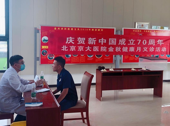 9月19日,北京京大醫院繼走入養老院義診后,又走進北京通州消防支隊,為消防員義務問診。
