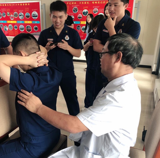 醫生為消防指戰員進行推拿按摩