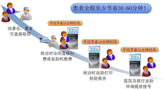 六項措施實施后,不僅提升醫院整體形象,取得了很好的經濟效益和社會效益。患者報告自助掛號,結算平臺,提升醫院信息化和管理水平;患者報告清單的選擇性打印,節約耗材,低碳環保。在醫護人員方面,優化了服務流程,提高了患者滿意度,減少醫護人員勞務支出,把時間還給病人,更好的為患者服務。在患者方面,通過多渠道分流,減少患者候診和排隊時間,改善就醫等待體驗,大大地節約患者看病的時間成本。