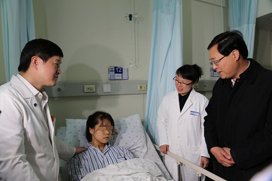 2017.2.21時(shí)任浙江省省長(zhǎng)車俊親切慰問浙江省人民醫(yī)院天臺(tái)分院“2.5火災(zāi)”傷員