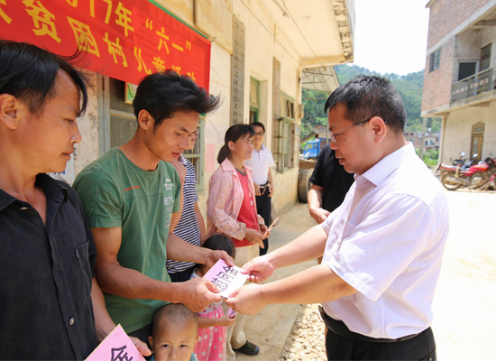 圖為院長吳曉秋在給幫扶困難兒童家庭送上慰問金