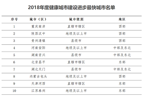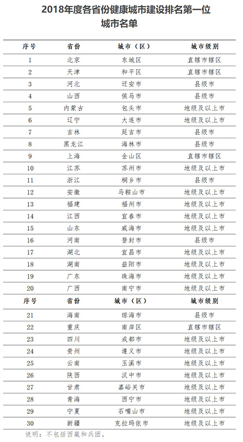 附:2018年度健康城市建設(shè)示范市名單、2018年度各省份健康城市建設(shè)排名第一位城市名單和2018年度健康城市建設(shè)進(jìn)步最快城市名單