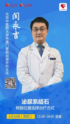 不同部位的結石治療方式的選擇又有何不同?已有結石的患者日常生活中有哪些注意事項?2020年1月16號(周四)15:00-16:00,“人民好醫生”App邀請到北京中醫藥大學東直門醫院泌尿外科主任閆永吉進行科普直播訪談,科普泌尿系統結石的成因和治療,并在線解答大家的各種困惑,別錯過哦。