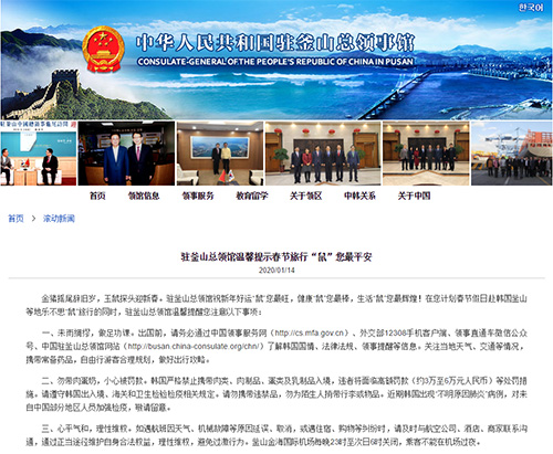 中國駐釜山總領(lǐng)館于14日溫馨提醒計劃在春節(jié)假日赴韓國釜山的游客,近期韓國出現(xiàn)“不明原因肺炎”病例,對來自中國部分地區(qū)人員加強(qiáng)檢疫,敬請留意。