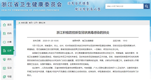 浙江省衛(wèi)健委表示,自國家衛(wèi)生健康委公布武漢不明原因肺炎疫情以來,浙江高度重視新型冠狀病毒感染的肺炎防控工作,根據(jù)省委、省政府要求,各級衛(wèi)生健康部門迅速全面響應(yīng),相繼成立專項工作組和專家組,及時制定各項應(yīng)急措施和工作方案。目前,我省各級各類醫(yī)療機(jī)構(gòu)和疾病預(yù)防控制機(jī)構(gòu)已全面加強(qiáng)預(yù)檢分診和發(fā)熱門診的力量配置,規(guī)范開展對可疑病例的監(jiān)測、篩查、診斷治療和處置工作。全省各地深入開展愛國衛(wèi)生運(yùn)動,加強(qiáng)環(huán)境整治,做好農(nóng)貿(mào)市場管理,全面落實各項防控措施。