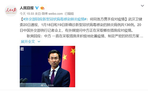外交部回應新型冠狀病毒感染肺炎疫情:將同各方保持密切溝通 攜手應對疫情