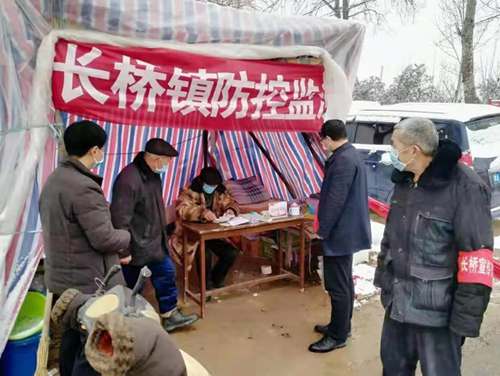 劉曉龍(右二)在鎮疫情防控點檢查 河南省郟縣縣委宣傳部供圖