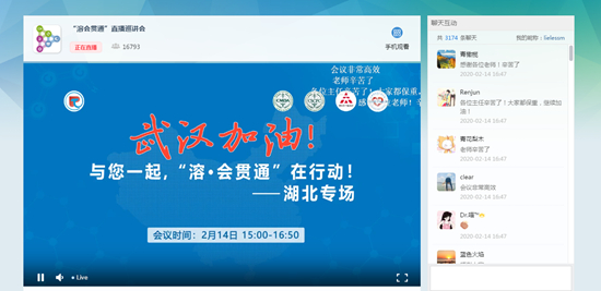 2月14日,主題為“武漢加油!與您一起,‘溶·會貫通’在行動”湖北專場舉行,為了響應疫情防控的需要,此次活動采用了創新的模式,通過網上直播的形式進行。據了解,這也是2020年“心健康公益行動”以“線上直播”形式走進湖北的第一場。據統計,此次網上直播有超過1.7萬人次在平臺觀看,3400多條彈幕留言。