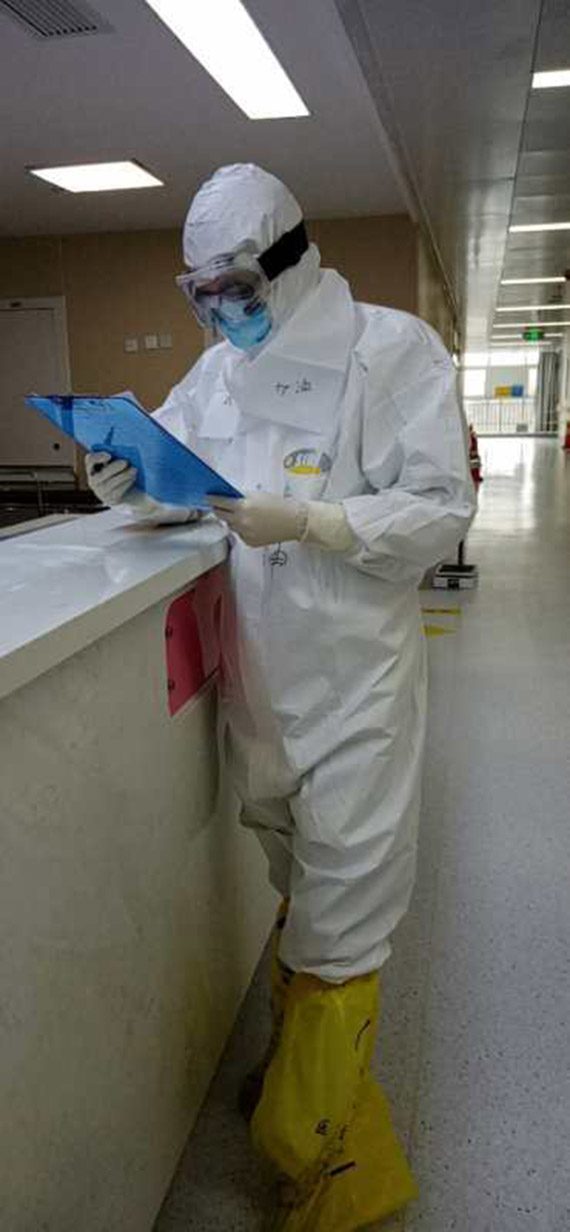 被選為醫療支援醫生時,郭功兵正在綜合醫療科值班。接到命令后,他內心一點也不感到意外,朋友圈里武漢同學連續在一線奮戰的情景早就烙在他的心里,所以沒有一點猶豫,他接受了任務。