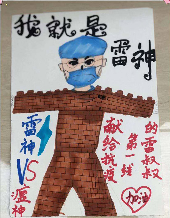 今年“雷神”再次奔赴一線,為了表達對他的敬佩和感激,有人專門給他畫了一幅漫畫加油鼓勁,希望“雷神”戰勝“瘟神”。雷懷定說:“收到漫畫我很感動,我們一定爭取早日打敗“瘟神”。