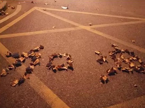 然而女漢子也有浪漫的一面,深夜回到住所,看著燈火輝煌卻寂靜無人的大街,她突發奇想,用地上的干樹葉拼了一個“加油”,這是她心中所想,也是眾多奮戰在一線人員的心中所想。