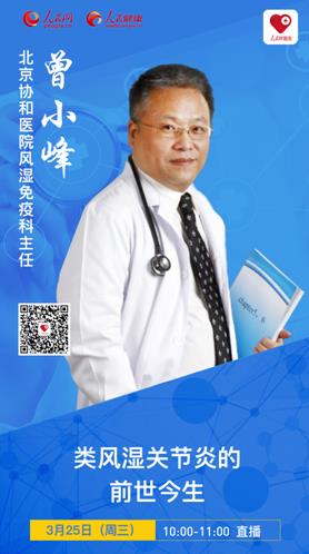 有兩種疾病大家往往是“傻傻分不清”,“風(fēng)濕性關(guān)節(jié)炎”和“類風(fēng)濕關(guān)節(jié)炎”僅僅一字之差,但分屬不同科室,前者屬于骨科疾病,后者則是風(fēng)濕免疫科的常見疾病。春季是類風(fēng)濕關(guān)節(jié)炎發(fā)病或復(fù)發(fā)的高危時節(jié)。2020年3月25日(周三)10:00,“人民好醫(yī)生”客戶端將邀請北京協(xié)和醫(yī)院風(fēng)濕免疫科主任曾小峰教授,來為我們解答類風(fēng)濕關(guān)節(jié)炎的成因到底是什么?