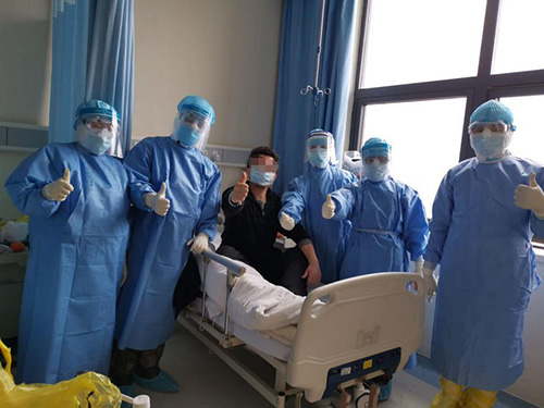 2月7日,收治患者后的第7天,唐子人所管轄的病區迎來了第一位新冠肺炎患者康復出院。雖然在病區內治療時,醫護人員都穿著厚厚的防護服,佩戴著口罩和護目鏡,但當患者康復后第一次站在住院樓下時,他一眼就認出了唐子人,激動地握著他的雙手說:“謝謝唐主任,是您給了我繼續活下去的希望!”唐子人笑著說:“這是我們應該做的!”