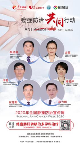 2020年4月9日(周四)15:00-16:00“人民好醫生”聯合中國醫學科學院腫瘤醫院推出直播活動,邀請國家癌癥中心副主任、中國醫學科學院腫瘤醫院副院長蔡建強、中國醫學科學院腫瘤醫院醫務處處長金晶、中國醫學科學院腫瘤醫院內科副主任周愛萍、中國醫學科學院腫瘤醫院介入治療科主任李肖、中國醫學科學院腫瘤醫院病理科副主任應建明、中國醫學科學院腫瘤醫院影像診斷科蔣力明,一起討論結直腸肝轉移的多學科治療。