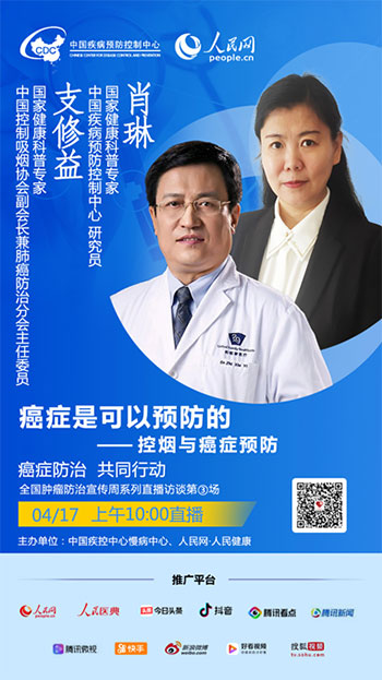 提起癌癥,就難免讓人想到被稱為“癌癥第一殺手”的肺癌,其已成為中國乃至全球發病率和死亡率最高的惡性腫瘤。雖然發病機制很復雜,但醫學界公認:吸煙是肺癌最重要的高危因素。那么吸煙與肺癌究竟存在怎樣的關系?控煙或戒煙對于癌癥的預防起到了哪些積極地意義?2020年4月17號(周五)上午10:00-11:00,人民日報社旗下新媒體“人民好醫生”客戶端將邀請國家健康科普專家、中國控制吸煙協會副會長兼肺癌防治分會主任委員支修益教授;國家健康科普專家、中國疾控中心研究員肖琳進行視頻訪談,與大家在線分享。