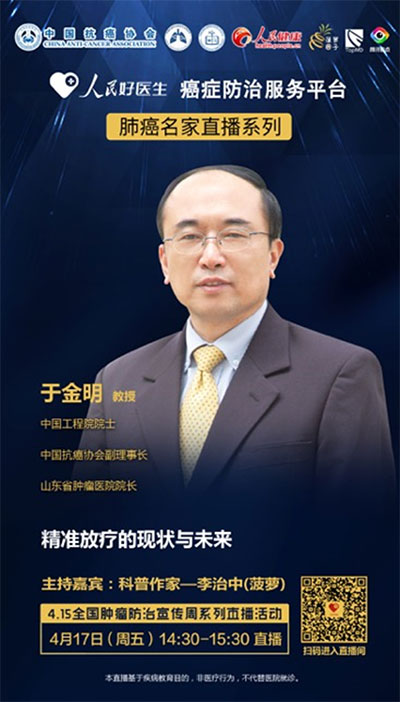 2020年4月17日(周五)14:30-15:30,人民好醫生客戶端邀請到中國工程院院士、中國抗癌協會副理事長、山東省腫瘤醫院院長于金明教授進行視頻直播訪談,在線分享精準放療的現狀與未來。
