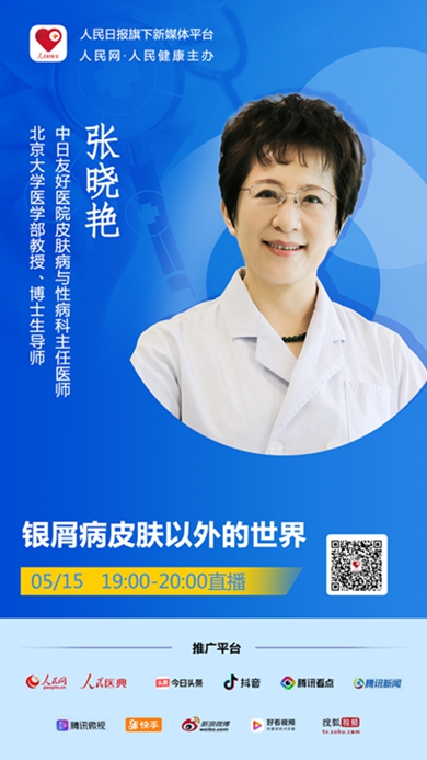 長期以來,大眾對于銀屑病的了解更多源于它對患者形象的影響和自信的打擊,但事實上,在醫生眼中它的難纏之處除了本身的特性外,還有共患病對患者身體的危害。2020年5月15日(周五)19:00,人民日報社旗下新媒體“人民好醫生”客戶端將邀請中日友好醫院皮膚病與性病科主任醫師,北京大學醫學部教授、博士生導師張曉艷進行視頻訪談,帶大家一起從多角度認識銀屑病,了解銀屑病皮膚以外的世界。