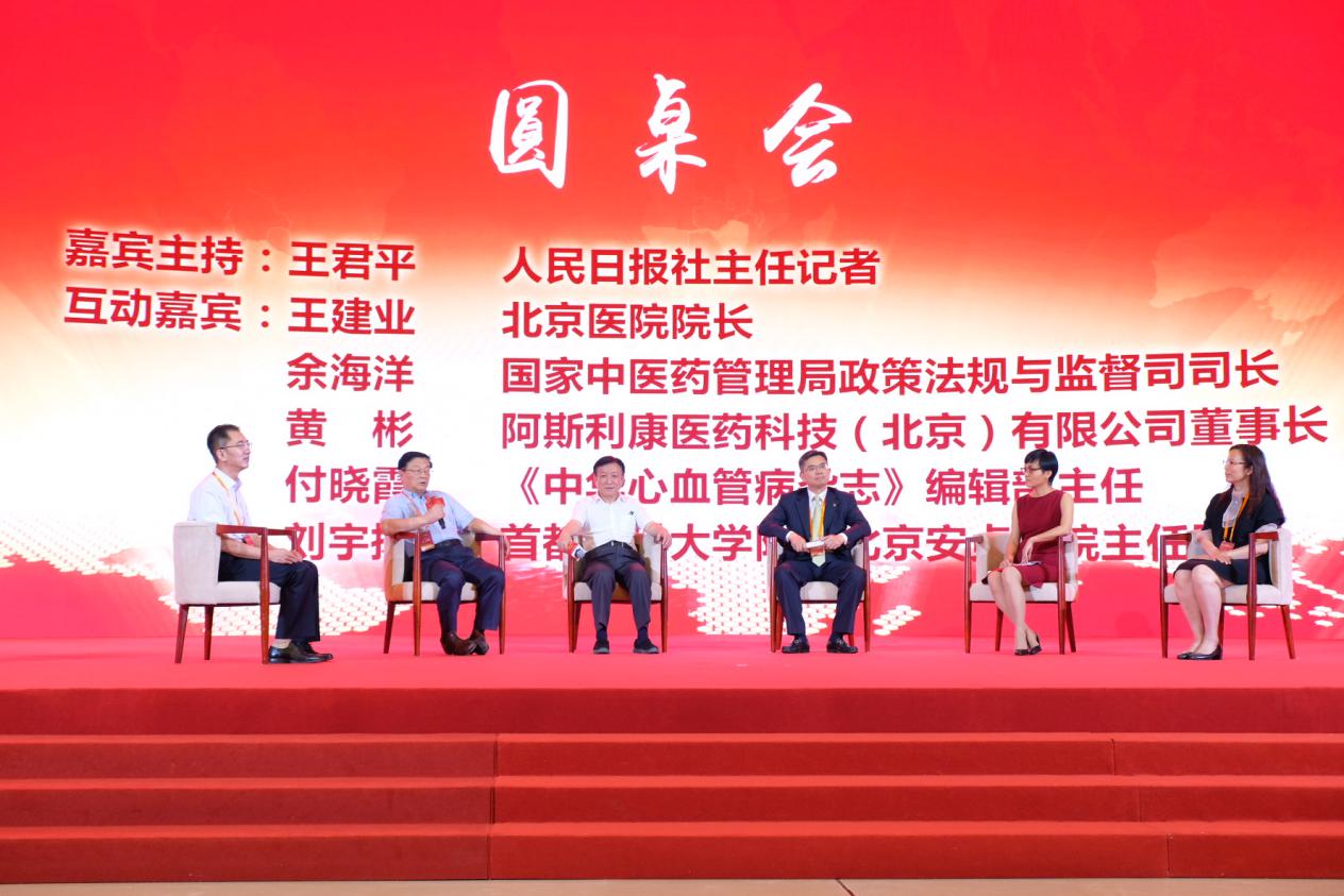 在圓桌論壇環節,北京醫院院長王建業、國家中醫藥管理局政策法規與監督司司長余海洋、阿斯利康醫藥科技(北京)有限公司董事長黃彬、《中華心血管病雜志》編輯部主任付曉霞、首都醫科大學附屬北京安貞醫院主任醫師劉宇揚、人民日報社經濟社會部主任記者王君平等來自醫學界與行業企業的嘉賓,圍繞“如何打造中西醫并重,彰顯中醫藥在慢性病防治中的優勢”“如何促進中藥質量提升和國際化”及“中醫藥科技創新的前景探討”等話題展開了熱烈交流與探討。