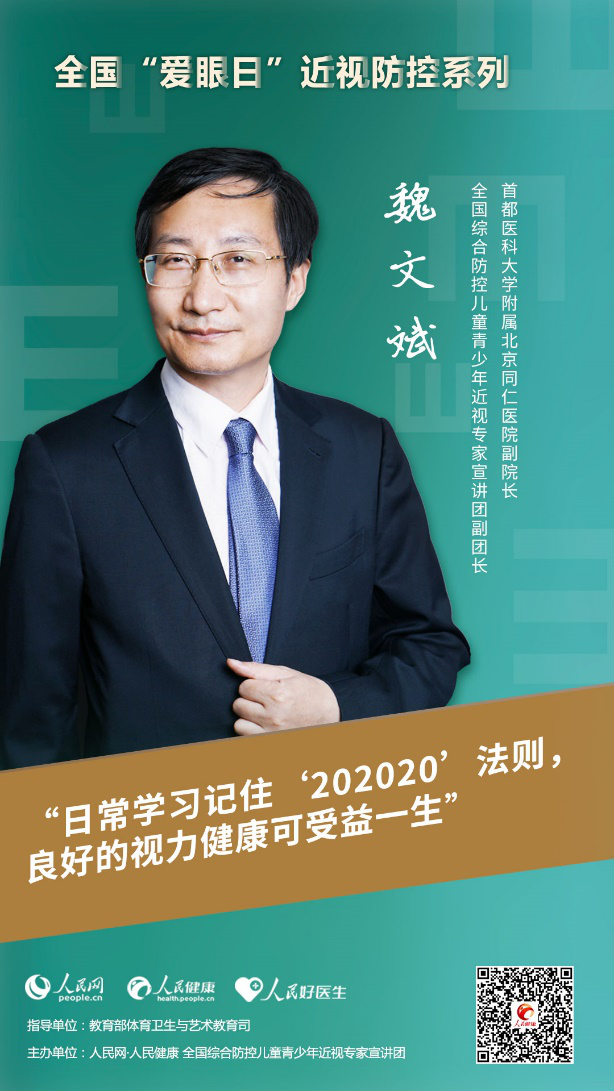 首都醫科大學附屬北京同仁醫院副院長、全國綜合防控兒童青少年近視專家宣講團副團長魏文斌,在“后疫情階段,‘小眼鏡’如何防與控?”節目中,對近視防控相關問題進行了講解。
