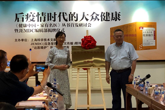 7月17日下午,由 上海科學技術文獻出版社,The Journal of Emergency Management and Disaster Communications(《應急管理與減災傳播》雜志,JEMDC),“達醫曉護”醫學傳播智庫聯合舉辦的“后疫情時代的大眾健康論壇”成功舉辦。數十位醫學與傳播學專家共同見證了JEMDC期刊編輯部的揭牌。論壇上,三家主辦單位簽署了戰略合作框架協議。上海市科學技術協會黨組書記,常務副主席馬興發出席論壇,并為JEMDC編輯部揭牌。