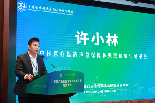 聯(lián)盟候任秘書長(zhǎng)許小林宣讀《中國(guó)醫(yī)療醫(yī)藥應(yīng)急保障體系聯(lián)盟聯(lián)合發(fā)起倡議書》。