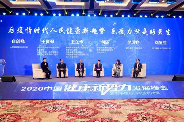 會上共設三場圓桌論壇。在“后疫情時代人民健康新趨勢 免疫力就是好醫生”圓桌論壇,中華醫學會感染病學分會主任委員、北京大學第一醫院感染疾病科主任兼肝病中心主任王貴強,解放軍總醫院第三醫學中心原急診科主任、精準健康傳播發起人、中國健康管理協會健康文化委員會主任委員王立祥,中國疾病預防控制中心營養與健康所研究員、科技處處長何麗,健合集團中國區CEO李鳳婷,阿里健康大藥房總經理劉恒浩,以及人民日報社高級記者白劍峰,就相關話題進行了交流。