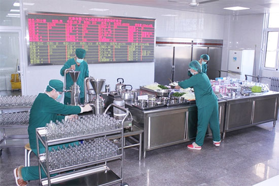 在專業工作的探索中,我們逐步認識到臨床營養已成為獨立的臨床學科,營養科專業工作從“保障膳食服務”發展為“技術支持服務”,現已進入“臨床診療服務”的新時代。為規范化落實臨床營養知識體系中的各項工作,對營養診療流程全面實施質量管理,我們逐漸完成了營養科專業工作功能區的建設:早在1985年即開展營養門診工作,面向糖尿病、高血壓、冠心病、營養不良等患者以食物食療治療調整營養代謝;針對營養評估工作分別于1989年、2007年建立了營養生化檢驗室、營養代謝檢測室;針對營養治療工作分別于1988年、1992年、2004年建立了腸內營養配制室、腸外營養配制室、醫療膳食配制室,從而為標準化實施各項營養診療核心技術、保障營養診療質量與安全提供了硬件基礎。
