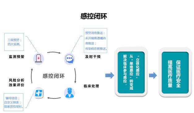 更換后的醫(yī)院感染實(shí)時(shí)監(jiān)控平臺(tái),包括聚合四大專家知識(shí)庫(kù)、可提供三級(jí)預(yù)警、可進(jìn)行隔離監(jiān)測(cè)、及時(shí)干預(yù)、統(tǒng)計(jì)分析和感控閉環(huán)六大功能。