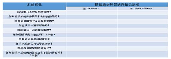 在疼痛管理(Pain managent)上,規范止疼泵使用;同時增加對術前、麻醉清醒前、睡前、活動后、術后三天疼痛的評估。