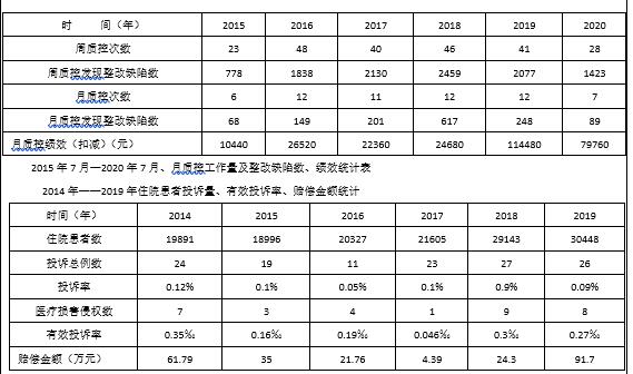 據(jù)該醫(yī)院工作人員介紹,該醫(yī)院三級質(zhì)控體系運行5年來,醫(yī)生對質(zhì)量控制的理解、認(rèn)識、態(tài)度明顯改善,質(zhì)控理念深入人心,同時,質(zhì)控員輪值制使一線骨干醫(yī)生經(jīng)歷了質(zhì)控培訓(xùn)、質(zhì)控檢查、科間學(xué)習(xí)等過程,他們的職業(yè)素質(zhì)得到明顯提升。醫(yī)生的質(zhì)控觀念明顯加強。密集的日、周質(zhì)控,在時間面上形成廣泛覆蓋,保證了病歷完成時效性,月質(zhì)控和質(zhì)控員的績效管理,讓臨床醫(yī)生時刻保持質(zhì)量控制警覺。質(zhì)控理念深入每一名醫(yī)生心中,在質(zhì)控約束下工作成為習(xí)慣。質(zhì)控避免了一些醫(yī)療缺陷的發(fā)生。質(zhì)控前移到環(huán)節(jié)質(zhì)量控制,使缺陷早期被發(fā)現(xiàn)、整改,形成了缺陷導(dǎo)向的醫(yī)療質(zhì)量管理。質(zhì)控工作提升了全體醫(yī)生的綜合職業(yè)素質(zhì)。實行三級質(zhì)控以來,已有68名醫(yī)生輪流擔(dān)任質(zhì)控員,占全部一線醫(yī)生34.51%,他們都經(jīng)歷了質(zhì)控培訓(xùn)、質(zhì)控檢查、反饋整改、科間學(xué)習(xí)等過程,職業(yè)素質(zhì)得到明顯提升。質(zhì)控效果體現(xiàn)在醫(yī)療投訴上,醫(yī)療投訴事件逐年減少,有效投訴事件及賠償大幅下降,遠(yuǎn)低于全國平均水平