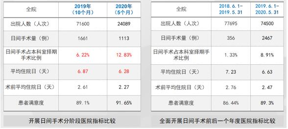 據該院工人員介紹,2020年新冠疫情期間在3月份復工復產重啟之后,行政MDT管理模式為日間手術運營的快速恢復提供了高效有力的保障。6月份日間手術量達到488例,日間手術占擇期手術比例占17.83%,達到了該項目開展以來的第二個小高峰。醫院平均住院日(6.35天)、術前平均住院日(2.2天)均呈現持續下降趨勢。在PDCA有效管控下,我們比較了開展日間手術前后的年度數據,以及開展日間手術后2019年10個月與2020年5個月分期數據,各項醫療業務指標和服務指標持續改善。