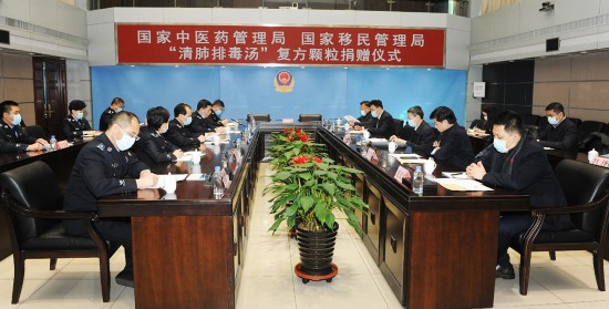 國家移民管理局與漳州片仔癀藥業有限公司簽訂了《清肺排毒湯復方顆粒捐贈協議》。國家移民管理局、國家中醫藥管理局有關部門負責同志,中醫藥領域專家代表等參加活動。