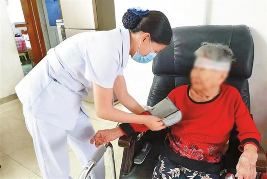 ▲醫護人員為患者提供家庭病床服務。