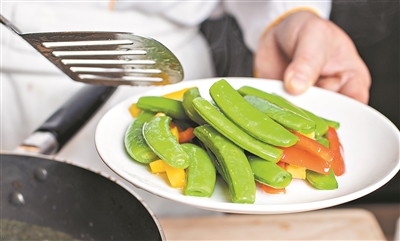6.將蜜豆、彩椒、白玉菇和牛肉加入鑊中,加少許生粉水打芡即可(圖④)。