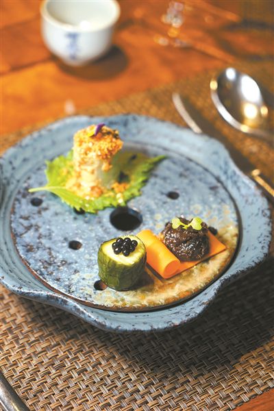 “如果狀態好的時候,我一小時就能設計出整張新菜單。”雅韻軒主理人勇哥說。這是廣州素食消費人均最高的餐廳,達到300多元。他說,一小時的迅速來源于平日的積累,他一年里有大量時間在鄉間與深山,只為了發現更多的新食材。比如最近菜單上使用到的野生紫百合正是他在貴州與農民聊天時聊出來的食材,比常規的白百合,野百合要更粉、更有質感與厚度,它的花青素含量頗高,抗氧化效果佳。而來自臺灣地區的柑樹子本身既苦又酸,被他用來腌制以后反而生發了醬香味,如同黃豆醬一般,當地通常用它來蒸豬手或者放入粥里。勇哥將它用到素菜之中。